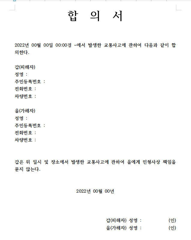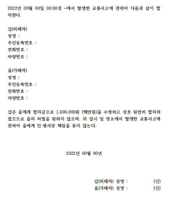 하지만 교통사고가 발생했을 때 합의서를 작성해야 할 상황이 발생할 수 있습니다.