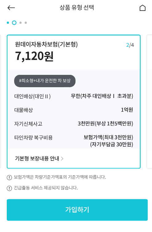 보험에 가입한다는 것 차체가 교통사고가 날 수도 있다는 걸 전제하게 가입하시는 것이기 때문에, 정말 최소한으로 하시겠단 하는 분들은 '최소형'을 하시면 됩니다.
