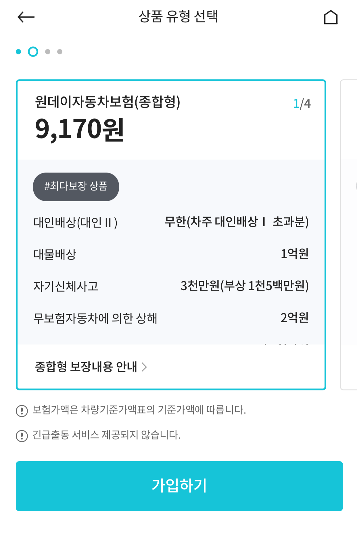 - 종합형, 기본형, 최소형, 차량손해보장형