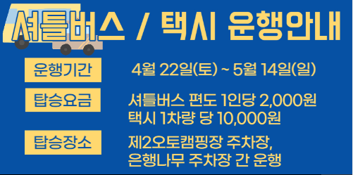 축제기간 동안 셔틀버스 및 택시 운행을 안내하고 있는데요.